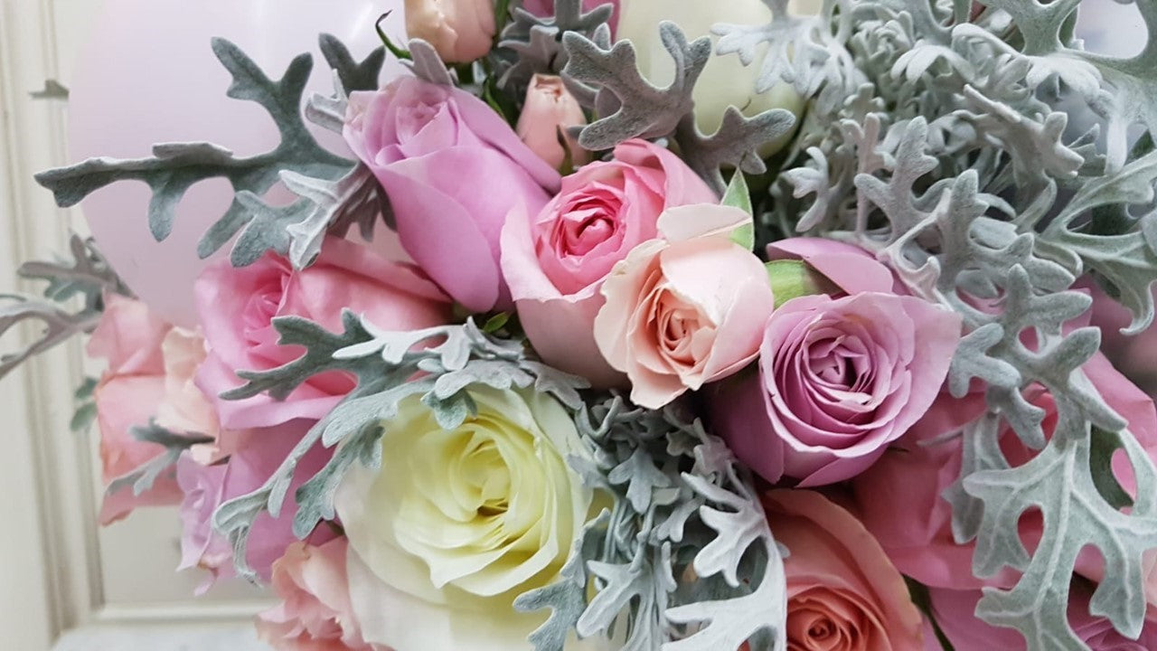 Bouquet de fantasía en tonos pastel. Bouquet de variedad de rosas calidad premium con detalles de globos. Arreglo floral exquisito que destaca la belleza de las rosas. Perfecto para reflejar tu buen gusto y celebrar esa ocasión tan especial. Florerías en México. Envía flores a esa persona tan especial y provoca su sonrisa.